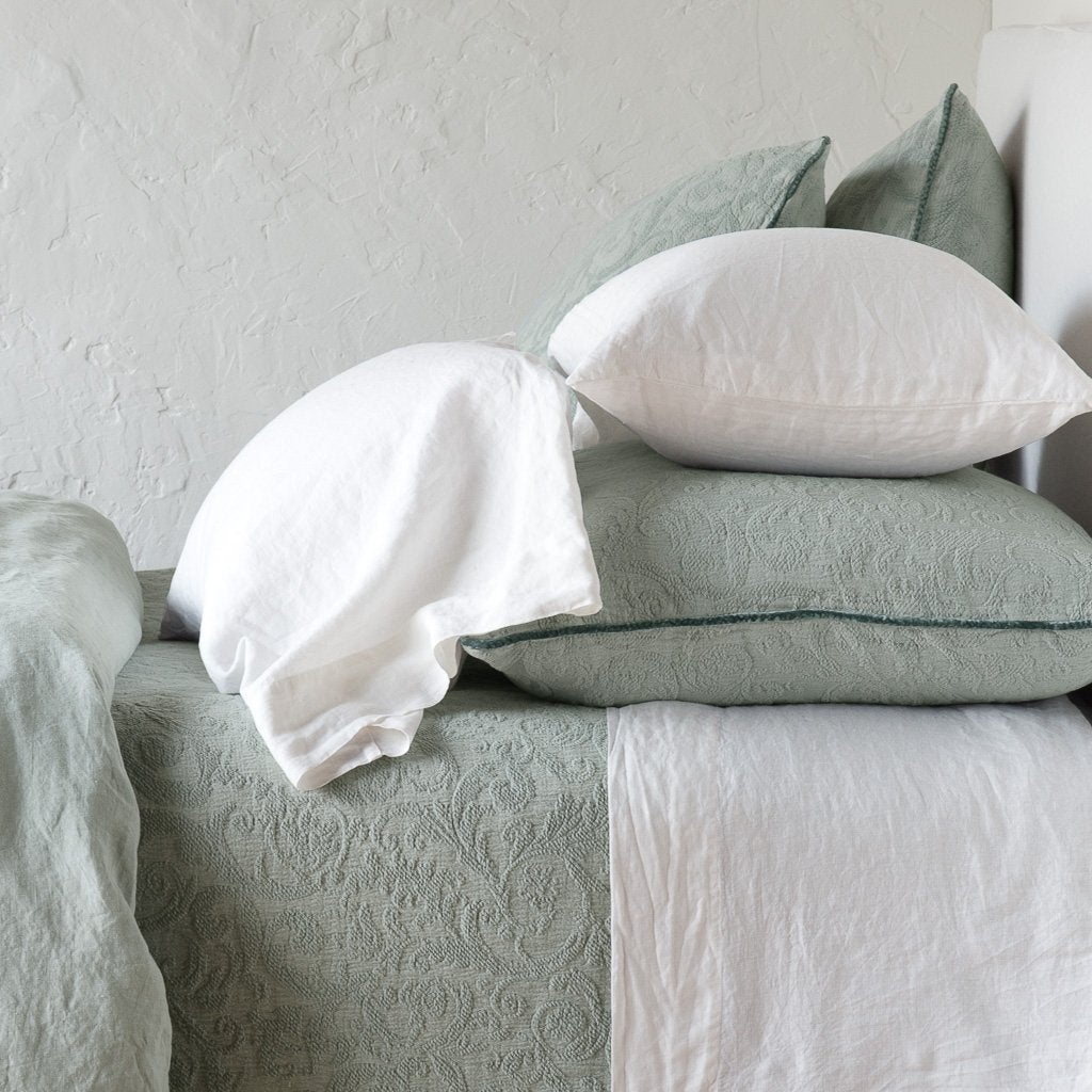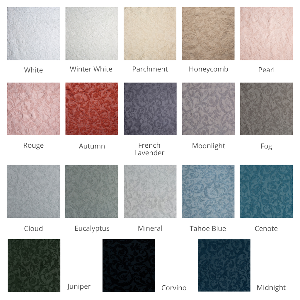 Made from 100% Organic Cotton, Bella's soft and sophisticated Adele Shams create a rich backdrop for your bed set. With a swirling baroque pattern, each garment dyed Sham is trimmed with luxurious Silk Velvet piping for added texture and a hint of rich color.