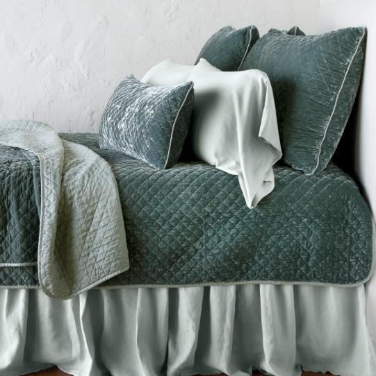 Silk Velvet Quilted Coverlet - Eucalyptus - Queen - ARRIVING SOON!