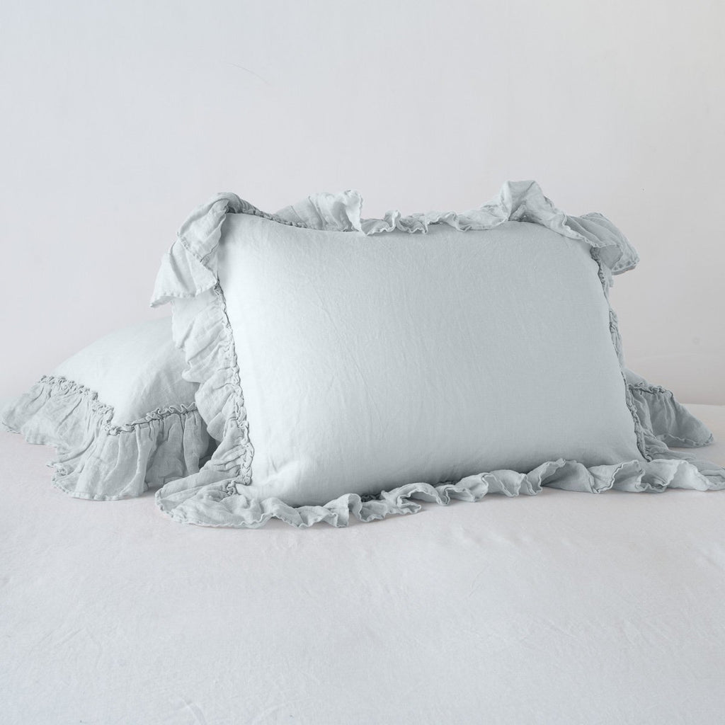 Bella's Linen Whisper Sham is the perfect romantic addition to your bedroom - elegant yet casual for everyday use. An ethereal 5" whisper ruffle and petite ruffle trim adorn all four sides of this soft, Linen-bodied pillow. Finished with Linen tie closures, fastening them as bows makes the back just as whimsical as the front.