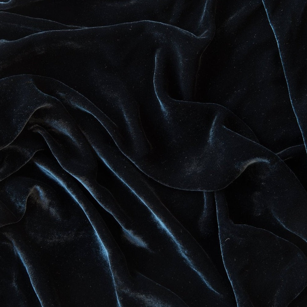 A petite Charmeuse ruffle with raw edges frames Bella's Carmen Throw Blanket, adding a hint of color play and shimmering detail. This Silk Velvet throw blanket is unfilled and sized to move with you from the sofa to a reading chair. This statement piece is reversible, and equally beautiful when garment dyed in Bella's lighter hues or deeper colors.