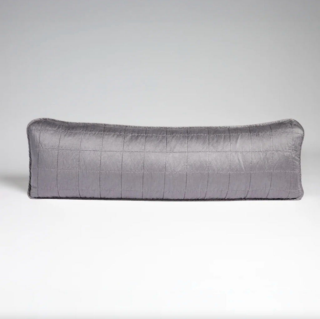 The box-quilt pattern on silky charmeuse on this 18"x54" body pillow pairs for sleek and stylish looks in any room and space. Perfect at the base of your shams or at the foot of the bed. Also works well on any sofa or day bed!