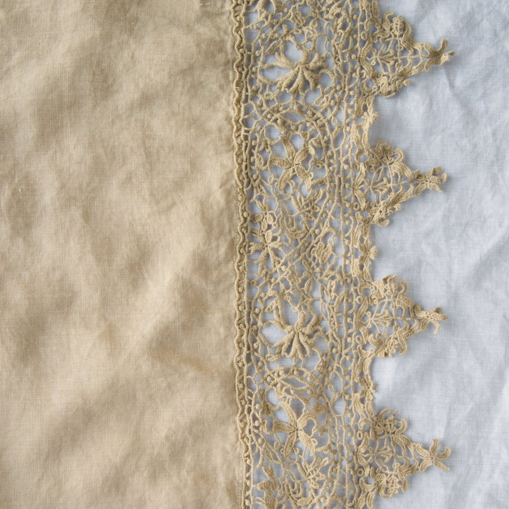 - Body: 100% Linen; Lace Trim: 100% Cotton